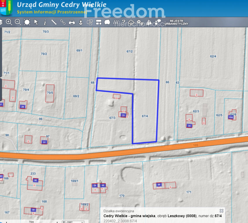 - usytuowanie działki – Leszkowy, gmina Cedry Wielkie, powiat