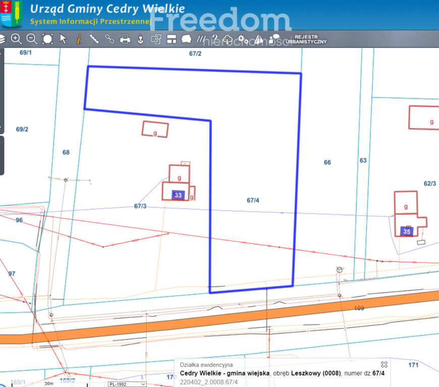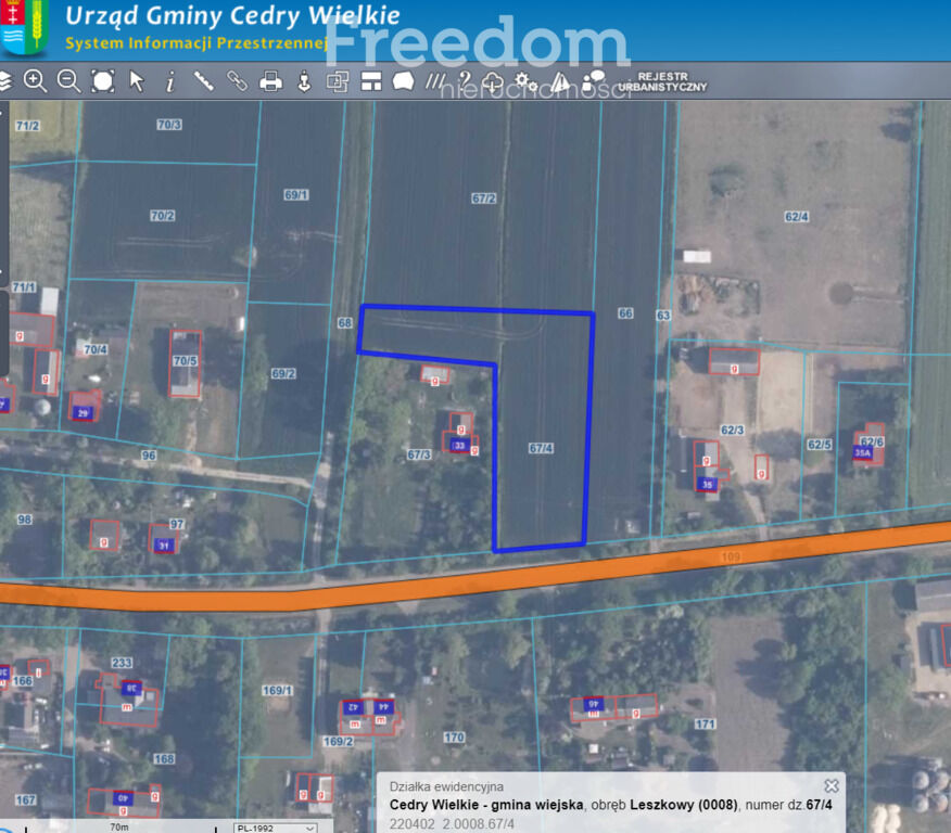 - usytuowanie działki – Leszkowy, gmina Cedry Wielkie, powiat